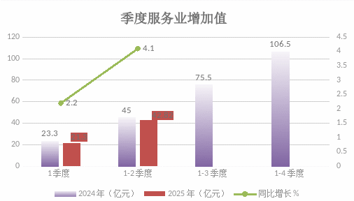 上半年,全区服务业增加值42.82亿元,同比增长4.1%。