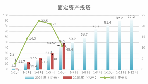 延续上年高速增长趋势,上半年全区固定资产投资(不含农户)48.38亿元,比上年增长10.9%。