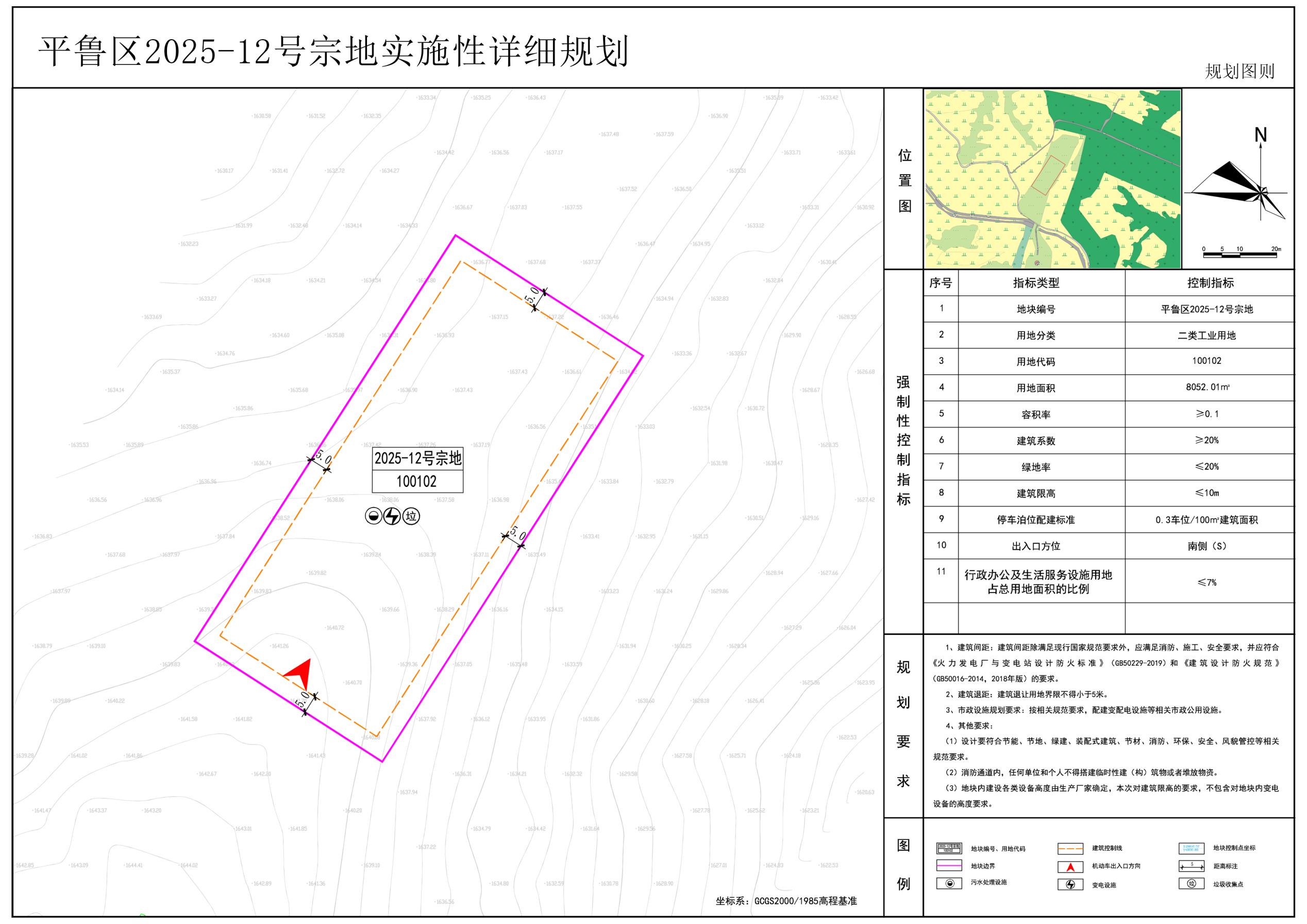 平鲁区2025-12号宗地实施性详细规划控制指标表